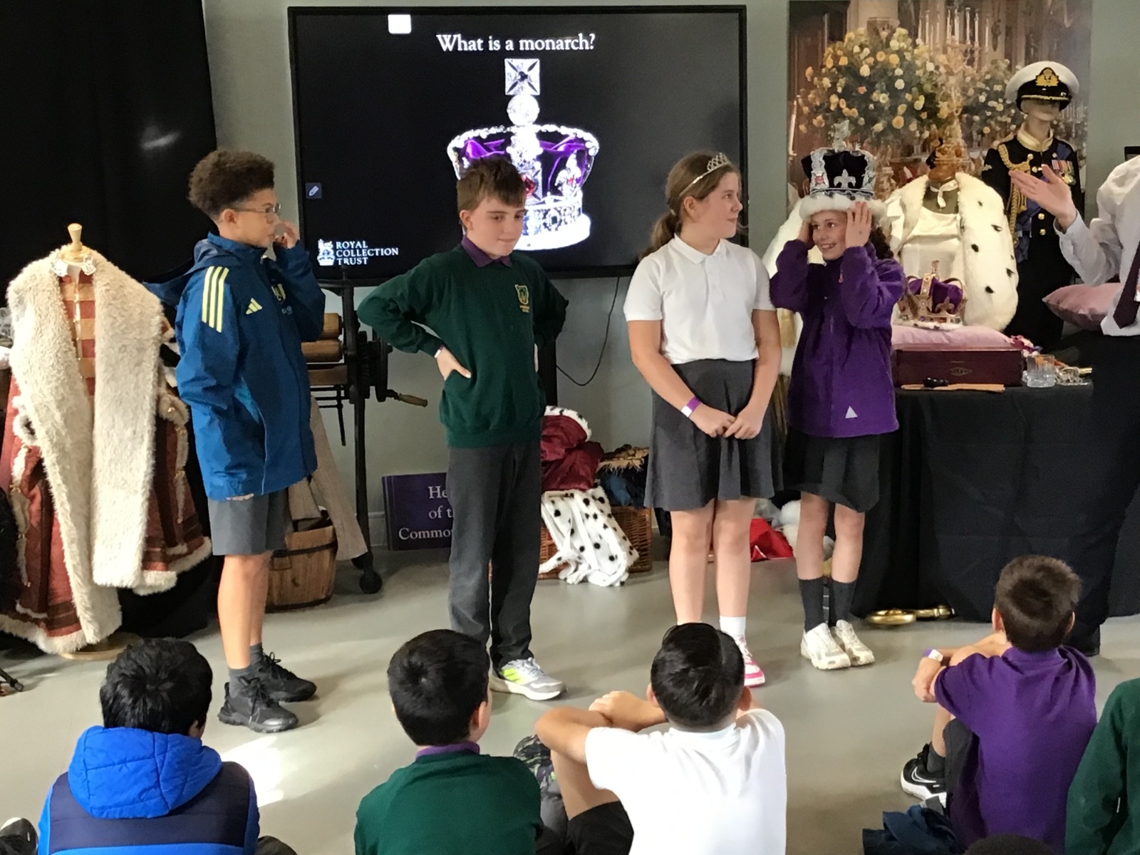 After lunch, we had a workshop about Changing of Monarchs, where we got to dress up as various historical figures such as William the Conqueror and our current monarch, King Charles III. The children represented Downsway so well and had some excellent questions to ask the guides, which made us very proud. It was a brilliant day where we did lots of hands on learning and had a great time too! Well done Year 5!
